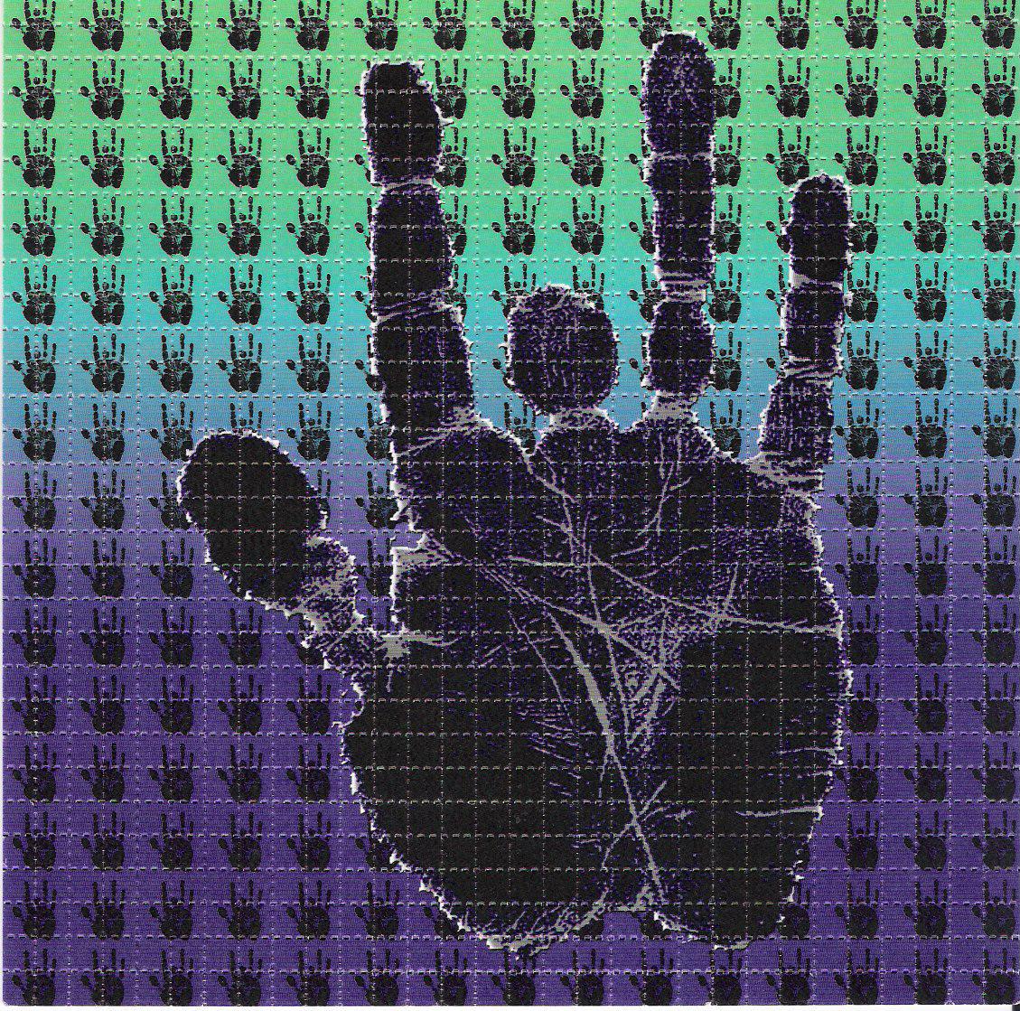 The hand print of the Grateful Dead's Jerry Garcia is reproduced on this Blotter Art print.